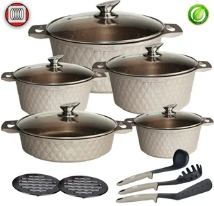 DishDelight 15-częściowy zestaw garnków i patelni z powłoką granitową