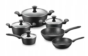 Zestaw zawiera: Patelnia: 24cm Patelnia: 28 cm Garnek z pokrywką 6 l Garnek z pokrywką 4,2 l Garnek z pokrywką 2,1 l Rondel z pokrywką 1,2 l