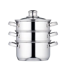 Zestaw KitchenCraft 3 garnków parowar/garnek do zupy 3-stopniowy z zabezpieczeniem indukcyjnym to wyjątkowy produkt, który łączy w sobie funkcjonalność, nowoczesny design oraz wysoką jakość wykonania. Wykonany ze stali nierdzewnej, garnki charakteryzują się nie tylko eleganckim wyglądem, ale także trwałością, co czyni je idealnym wyborem dla każdego, kto ceni sobie długowieczność sprzętu kuchennego. Jednym z kluczowych atutów tego zestawu jest jego innowacyjny system parowania, który pozwala na jednoczesne gotowanie kilku potraw w różnych poziomach. Dzięki temu można przygotować zdrowe posiłki, zachowując przy tym wszystkie wartości odżywcze składników. Garnki są idealne do gotowania na parze warzyw, ryb czy mięs, co sprawia, że są doskonałym rozwiązaniem dla osób dbających o zdrową dietę.