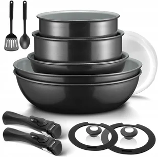 Garnki i patelnie z odpinanymi uchwytami pozwalają zaoszczędzić do 75% miejsca w szafkach. Wykonane z trwałego aluminium z nieprzywierającą powłoką ceramiczną, są wolne od szkodliwych substancji (PFOA, PTFE), co gwarantuje zdrowe gotowanie. Zestaw jest uniwersalny - nadaje się na wszystkie rodzaje kuchenek, w tym indukcyjne, a jego łatwość czyszczenia i możliwość mycia w zmywarce sprawiają, że to idealny wybór do każdej kuchni. ⭐ Dlaczego warto kupić?