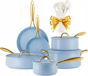 Zestaw naczyń kuchennych zawiera: patelnie (20 cm i 26 cm) z powłoką zapobiegającą przywieraniu, patelnia do sosu (28 cm) z pokrywką, garnek typu Dutch Oven (24 cm) z pokrywką, garnek z uchwytem (16 cm i 20 cm) z pokrywką, 6-częściowy zestaw silikonowych przyborów do gotowania Nie zawiera toksyn - zdrowa ceramiczna powłoka nieprzywierająca tego zestawu garnków i patelni jest wolna od PFAS, PFOA, ołowiu i kadmu, dzięki czemu jest bezpieczna dla Ciebie, Twojej rodziny i środowiska Naturalna powłoka zapobiegająca przywieraniu - koniec z lepkimi lub trudnymi do czyszczenia problemami. Ceramiczne naczynia do gotowania wymagają mniej oleju lub masła do gotowania, a minimalne szorowanie zapewnia nieskazitelne czyszczenie Nadaje się do wszystkich płyt kuchennych i piekarników - innowacyjne dno indukcyjne zapewnia równomierne rozprowadzanie ciepła na wszystkich płytach kuchennych, zarówno indukcyjnych, gazowych, elektrycznych, halogenowych, jak i ceramicznych. Ponadto zestaw garnków i patelni z powłoką zapobiegającą przywieraniu nadaje się do piekarnika do 550°C i dlatego doskonale nadaje się do pieczenia chleba i smażenia Bardzo wytrzymała pokrywa aluminiowa - kute aluminiowe pokrywki zapewniają dodatkową wytrzymałość i są wykonane z precyzją, ich wydajność uszczelniania jest większa niż w przypadku innych szklanych pokrywek, dzięki czemu smak potraw jest lepiej zachowany