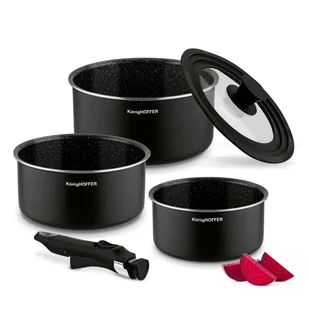 Zestaw garnków z ODPINANĄ RĄCZKĄ garnki NA GAZ 1,5/2,2/3 L Spinel Black Konighoffer