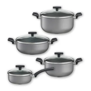 8 elementów (z pokrywkami)- garnek 24 cm, wysokość 12,5 cm, pojemność 5 l- garnek 24 cm, wysokość 9 cm, pojemność 3,5 l- garnek 20 cm, wysokość 10,5 cm, pojemność 2,9 l- rondelek 16 cm, wysokość 6,8 cm, pojemność 1,1 l