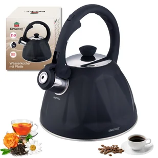 Czajnik z gwizdkiem, 2 L, czarny mat, stal nierdzewna KINGHOFF