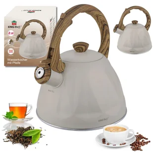 Czajnik z gwizdkiem, 2 L, kremowy, stal nierdzewna KINGHOFF