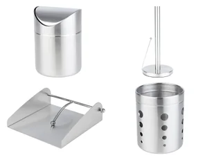 Livarno home Przybory kuchenne, ze stali nierdzewnej Opis produktu Pojemnik na odpadki kuchenne zdejmowana pokrywa wymiary: ok. 11,5 x 16 cm (Ø x wys.) Uchwyt na ręcznik kuchenny stabilne ustawienie dzięki antypoślizgowej stopce spód chroniący blat stołu przed zarysowaniem wymiary: ok. 14,5 x 32 cm (Ø x wys.) Serwetnik z antypoślizgowymi nóżkami obciążenie ułatwiające używanie na zewnątrz wymiary: ok. 17 x 17 x 6 cm (dł. x szer. x wys.) Pojemnik na sztućce do przejrzystego przechowywania wymiary: ok. 12 x 15 cm (Ø x wys.) Cechy produktu table{width:100%;}td{padding-right: 30px; padding: 0.5rem; border-bottom: 0.0625rem solid #e3e4e5;} tr: