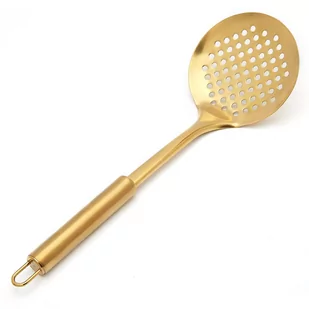 Łyżka cedzakowa Konighoffer Amber zapewnia wygodne nakładanie makaronowej zapiekanki, jedzenia smażonego na głębokim tłuszczu oraz składników, które należy wcześniej odcedzić. Dzięki możliwości zawieszenia będzie zawsze pod ręką. Wykonanie ze stali nierdzewnej gwarantuje możliwość wieloletniego używania szumówki. Łatwo ją też umyć, ponieważ ma prosty kształt. Jej złote wykończenie doda prestiżu twojemu zestawowi akcesoriów kuchennych.
