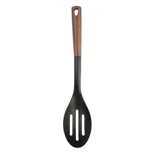 Nylonowa łyżka cedzakowa z linii Prime marki VALDINOX charakteryzuje się ciekawą, grawerowaną strukturą zewnętrzną oraz efektownym uchwytem o wyglądzie drewna egzotycznego. Idealnie sprawdzi się w każdej kuchni.