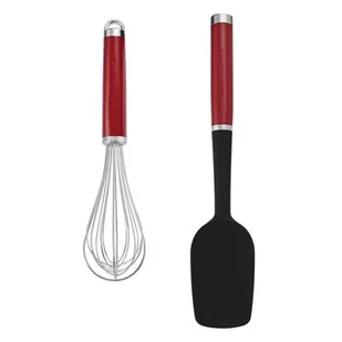 Zestaw szpatułki i trzepaczki Empire Red marki KitchenAid to niezbędne narzędzia kuchenne, które ułatwiają przygotowywanie potraw. Szpatuła kuchenna, odporna na temperatury do 250°C, idealnie nadaje się do mieszania i nabierania składników, a jej silikonowa końcówka chroni naczynia przed zarysowaniami.