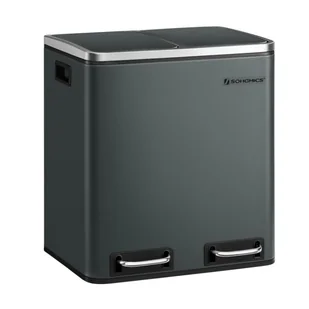 Szczelny zielonkawo-szary kosz na odpady z czarnymi elementami z funkcją wolnego zamykania ze stali i tworzywa sztucznego oraz 2 wewnętrznymi wiaderkami