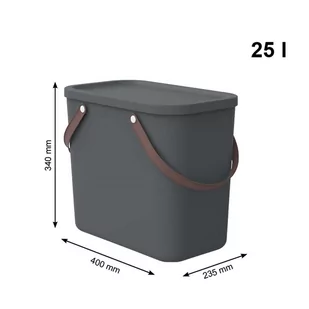1050008853 - Pojemność: 25 litrów - Wymiary: 400 x 340 x 235 mm - Materiał: tworzywo sztuczne pochodzące z recyklingu - Pojemnik wyposażony w uchwyty oraz pokrywę - Kolor: antracyt Zestaw zawiera- Pojemnik do przechowywania Rotho Albula 25 litrów - kolor antracyt Cechy- Pojemnik Albula o pojemności 25 litrów, służący do przechowywania małych i dużych przedmiotów - Funkcjonalność i jakość szwajcarskiej marki ROTHO - Pojemnik wyposażony w uchwyty ułatwiające jego przenoszenie oraz pokrywę - Zaprojektowany z myślą o maksymalnym wykorzystaniu małej przestrzeni - Pojemniki można układać jeden na drugim - Dzięki łatwemu w pielęgnacji tworzywu pojemniki można szybko wyczyścić na zewnątrz i wewnątrz - Kolor: