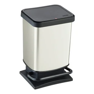 Metalizowany kosz na śmieci o nowoczesnej i lekkiej konstrukcji. Na zewnątrz pokryty łatwą do utrzymania w czystości powłoką metalową. Aluminiowa folia zabezpiecza przed pozostawaniem śladów palców, jest odporna na rdzę i śniedzenie. Dzięki amortyzacji klapy kosz zamyka się cicho, a otwiera się go wygodnym dużym pedałem dostępnym z 3 stron kosza. Kosz jest odporny na uderzenia, nie wgniata się jak kosze metalowe i jest znacznie od nich lżejszy.