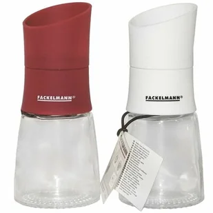 Młynek do przypraw, pieprzu lub soli marki FACKELMANN wykonany ze szkła oraz tworzywa sztucznego wykończonego powierzchnią "soft grip" przyjemną w dotyku i zapobiegającą wyślizgiwaniu się pojemnika z dłoni.