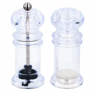 RĘCZNE - Zestaw składający się z solniczki oraz młynka do pieprzu. Solniczka ma wymiary 4 x 10 cm a młynek do pieprzu ma wymiary 4 x 11 cm. AKRYLOWE - Pieprzniczka i solniczka wykonane są z przezroczystego akrylu. FUNKCJONALNE - Sprawdzą się do mielenia pieprzu oraz podawania soli. Klasyczny design sprawi, że będą pięknie prezentować się na stole.