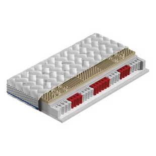 Materac z wkładem sprężynowym o siedmiu polach twardości i warstwą pianki termoelastycznej w pokrowcu z dzianiny skutecznie odparowującej wilgoć.