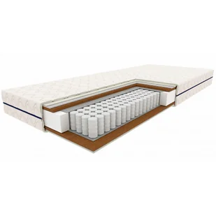 2. Maty kokosowe Naturalna mata z kokosa igłowanego posiada właściwości przeciwbakteryjne i przeciwgrzybiczne. Dobrze odprowadza wilgoć i zapewnia odpowiednią cyrkulację powietrza stwarzając higieniczne warunku do snu. Kokos utwardza i stabilizuje konstrukcję materaca, gwarantując właściwe oparcie ciała osób o większej wadze. 3. Sprężyny kieszeniowe Profesjonalne 12 cm sprężyny kieszeniowe dopasowują się do anatomicznych kształtów ciała i amortyzują jego ruchy niwelując efekt falowania materaca. Materac z wkładem kieszeniowym to idealny wybór dla par, ponieważ zmiany pozycji ciała w czasie snu nie wybudzają drugiej osoby.