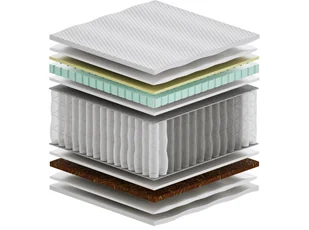 - pokrowca, - włókna klimatyzującego, - pianki HR, - warstwy lateksu, - pianki visco memory, - kokos, - filcu, - sprężyn kieszeniowych multipocket.