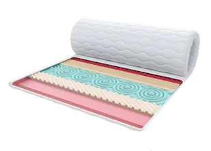 Oznacza to, że indywidualnie dopasowuje się do każdej części ciała, a to przekłada się na komfort snu. Jest przy tym 40% bardziej wytrzymała niż standardowe pianki poliuretanowe o tej samej gęstości oraz odzyskuje swój kształt dwa razy szybciej. Drugi składnik nakładki to termoplastyczna pianka VISCO. Jej unikatowy skład oraz konstrukcja sprawiają, że reaguje ona na temperaturę i nacisk śpiącej na niej osoby. Daje efekt zapadania się w nakładce i spania „na chmurce”.