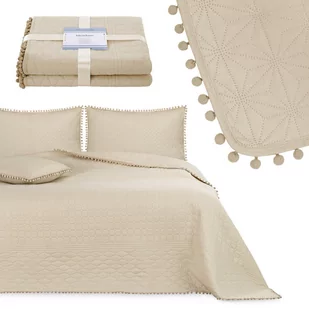 Dodatkowe informacje: Pompony na każdym boku narzuty. Średnica pompona – 1 cm. Rodzaj opakowania: Folia, insert Pikowana narzuta AmeliaHome z kolekcji Meadore w kolorze beżowym została wykonana z wysokiej jakości materiału.