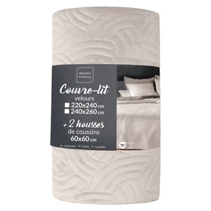Kremowy aksamitny zestaw narzuty na łóżko i poszewki na poduszkę 240x260 cm Solange – douceur d'intérieur