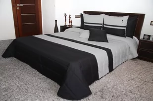 Kupujesz polski produkt bezpośrednio u producenta! Narzuta na łóżko NM45-C Kolorystyka: czarno-szara Skład: 100% poliester Opakowanie: foliowy pokrowiec z rączką Cena dotyczy narzuty bez poszewek Dostępna jest w kilku rozmiarach W tej samej kolekcji występują: zasłony i poszewki (sprawdź w zakładce:"Produkty podobne") Cechy:
