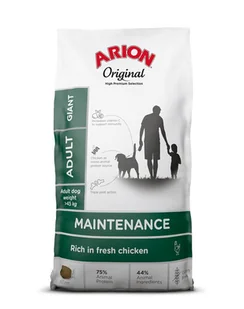 Duży pies i jeszcze większy apetyt! Aby dostarczyć do organizmu Twojego czworonożnego przyjaciela wszystkie ważne składniki odżywcze, których potrzebuje każdego dnia, należy zadbać o zbilansowaną dietę, która jest specjalnie dostosowana do jego potrzeb. Sucha karma Arion Original Maintenance Giant, kurczak została opracowana specjalnie dla dorosłych, bardzo dużych psów. Nie zawiera glutenu i dlatego nadaje się również dla wrażliwych zwierząt z odpowiednimi nietolerancjami pokarmowymi. Do głównych składników karmy zaliczamy kurczaka i ryż. Receptura ma na celu wsparcie układu mięśniowo-szkieletowego oraz prawidłowego trawienia.
