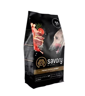 Savory karma sucha z kaczką i królikiem dla psów dorosłych wszystkich ras 3 kg Holistyczna receptura ze świeżą kaczką i dehydratyzowanym królikiem, aby zacho...