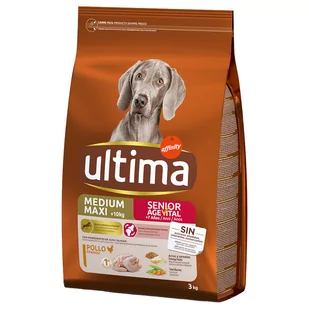 Ultima Medium / Maxi Senior z kurczakiem to smaczna karma specjalnie dostosowana do potrzeb żywieniowych psów od 7 roku życia. Mięso z kurczaka jest nie tylko smaczne i lekkostrawne, ale także stanowi cenne źródło białka zwierzęcego. Ważne jest, aby zapewnić starszym psom odpowiednią dietę w związku ze zmianą zapotrzebowań. Karma wzmacnia kości i stawy, a tym samym wspomaga mobilność i witalność. Zawiera również chondroitynę i glukozaminę, które zapobiegają chorobie zwyrodnieniowej stawów oraz niszczeniu starej tkanki chrzęstnej, co sprzyja utrzymaniu i elastyczności chrząstki stawowej.