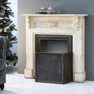 Autentyczne postarzenie i kunsztowne zdobienia. Rama wykonana z drewna sosnowego. Szlachetny urok vintage, który doskonale pasuje do stylu shabby chic. W zestawie z ozdobną osłoną przeciwogniową wykonaną z żelaza. Wspaniały dodatek, który wyczaruje w Twoim domu stylową przytulność.
