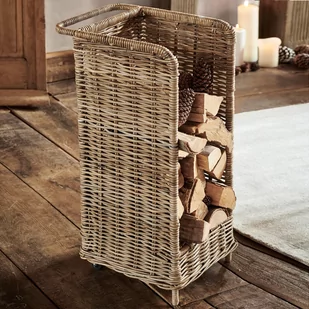 Został on wykonany ręcznie według wszelkich zasad tradycyjnej sztuki plecionkarskiej z naturalnego materiału, jakim jest rattan – zachwycający najlepszymi właściwościami użytkowymi. Włókna palmy rotang są naturalnie lekkie, ale jako plecionka stają się wyjątkowo mocne, dzięki czemu kosz doskonale nadaje się również do przechowywania cięższych przedmiotów, takich jak polana. Aby oszczędzić Ci mozolnego przenoszenia wypełnionego kosza na drewno, wyposażyliśmy go w stabilną rączkę i dwa gumowe kółka, dzięki czemu przemieszczanie go jest dziecinnie proste: od miejsca składowania drewna poza domem prosto do kominka w salonie. Kosz na drewno jest nie tylko praktyczny, ale również cieszy oko.