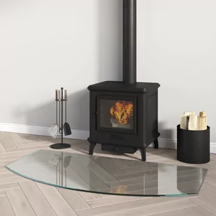 Ten szklany panel kominkowy może być używany jako mata podłogowa w celu ochrony powierzchni podłogi podczas palenia w kominku.