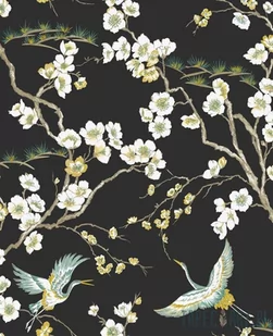 Superfresco Easy Czarna tapeta winylowa na flizelinie gałązki kwiaty ptaki styl japoński 105984_opcje