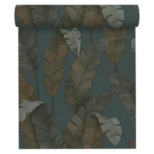 Tapeta winylowa na flizelinie z kolekcji Metropolitan St. 3 z oryginalnym roślinnym motywem dużych liści w kolorach brązu, zieleni . Piękna dekoracja ścian salonu, sypialni kuchni jadalni w stylu nowoczesnym. Bogaty dekor może zdobić jedną scianę . Winyl odporny na zmywanie i szorowanie pozwala na łatwy montaż suchych pasów tapety na ścianie posmarowanej klejem.
