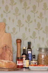 Tapeta dla dzieci Szaro Niebieska Liście Dębu