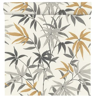 Tapeta liście beżowo-szara winylowa na flizelinie