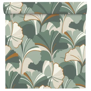 Tapeta liście zielono-beżowa winylowa na flizelinie