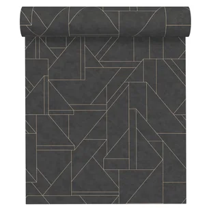 Tapeta winylowa na flizelinie z kolekcji Metropolitan St. 3 z oryginalnym geometrycznym wzorem w kolorach metalicznego złota na czarnym tle to piekna dekoracja ścian salonu, sypialni, jadalni, kuchni w stylu nowoczesnym. Winyl odporny na zmywanie i szorowanie. Podłoże z flizeliny pozwala na łatwy montaż suchych pasów tapety na ścianie posmarowanej klejem. Przed montażem nalezy zapoznać sie z instrukcją podaną na etykiecie.