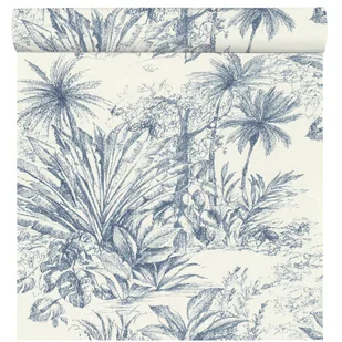 Tapeta tropikalna biało-niebieska winylowa na flizelinie