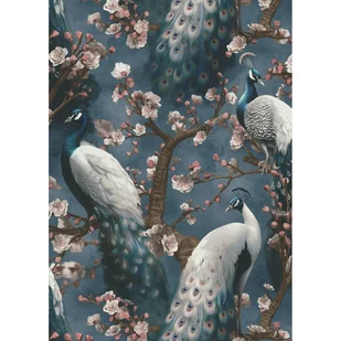 Tapeta winylowa na flizelinie paw niebieskie tło Tapeta z wzorem pawi na niebieskim tle to niezwykle elegancki dekoracyjny element, który wnosi do wnętrza egzotyczny i luksusowy charakter. Dostojne, królewskie ptaki są realistycznie odwzorowane, z dbałością o najdrobniejsze szczegóły, natomiast gałązki z drobnymi kwiatkami dodają całości rysunku lekkości i romantyzmu. Inspirowany naturą wzór zachwyca bogactwem kolorów oraz detali, tworząc dynamiczne i artystyczne wrażenie. Sprawdzi się idealnie w szykownym salonie czy też romantycznej sypialni. Różnorodność wzorów i zastosowań Estetyczna i łatwa w zastosowaniu tapeta dekoracyjna to niezwykle popularne rozwiązanie wykorzystywane przy projektowaniu oraz renowacji wnętrz.
