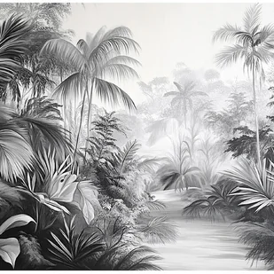 Fototapeta 3D Dżungla Czarno Biała Krajobraz 300x210 cm Tapeta Do Sypialni Salonu Kuchni Na Flizelinie