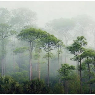 FOTOTAPETA 3D LAS DRZEWA MGŁA ZIELONY NA ŚCIANĘ SYPIALNIA SALON 350x250