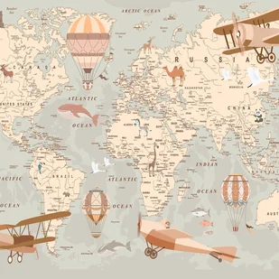 Fototapeta Dla Dzieci Mapa Świata Beżowy 200x140 cm Tapeta Do Pokoju Dziecięcego Na Flizelinie
