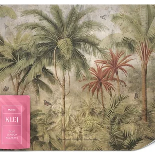 FOTOTAPETA DO SALONU ABSTRAKCJA LAS DŻUNGLA PALMY STYL RETRO BETON 350x256