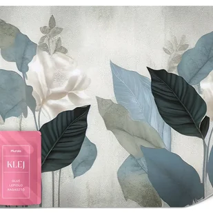 FOTOTAPETA DO SALONU NIEBIESKIE LIŚCIE ABSTRAKCJA MURAL BETON MUR 150x105