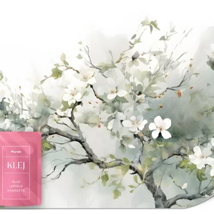 FOTOTAPETA DO SYPIALNI AKWARELE DRZEWO BIAŁE KWIATY ABSTRAKCJA 450x315