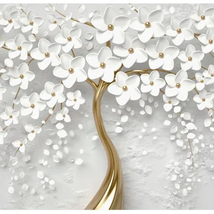 Fototapeta Drzewo 3D Kwiaty Złoty 150x105 cm Tapeta Do Sypialni Salonu Kuchni Na Flizelinie