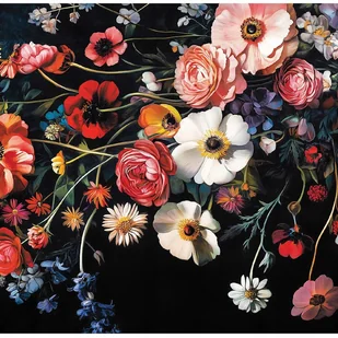 Fototapeta Kwiaty Polne Kolorowe na Czarnym Tle 350x250 cm Tapeta Do Sypialni Salonu Kuchni Na Flizelinie
