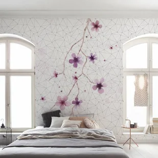 Fototapeta kwiaty wiśni czarno-białymIróżowym - 200 x 250 cm - SANDERS & SANDERS