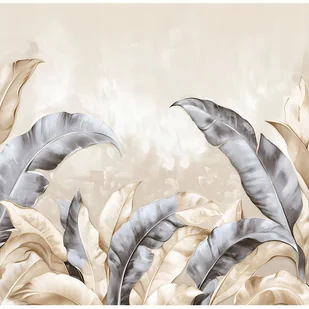 Fototapeta Liście Bananowca Beton Beżowy 350x250 cm Tapeta Do Sypialni Salonu Kuchni Na Flizelinie