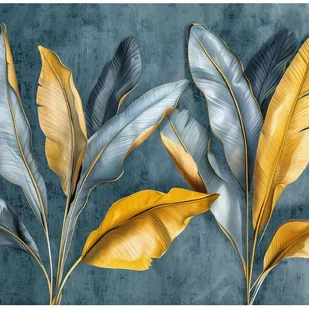 Fototapeta Liście Bananowca Beton Niebieski 400x280 cm Tapeta Do Sypialni Salonu Kuchni Na Flizelinie